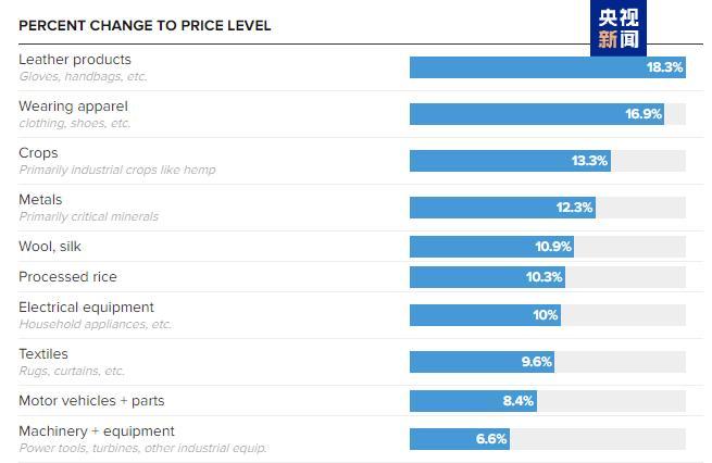 根据耶鲁大学的预算实验室的说法,诸如皮革产品,服装,农作物,金属和羊毛等类别中产品的价格上涨将超过10%。