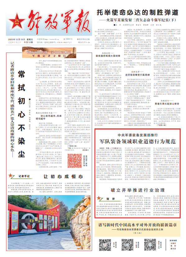小编:军事装备领域职业道德规范 解放军报何鹏记者安普忠报道:为全面贯彻落实习近平主席关于装备建设的重要指示精神